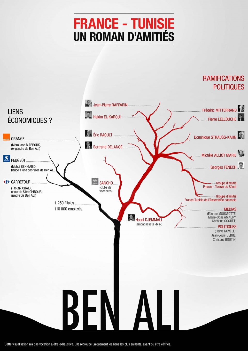 La classe politique française a ménagé ses rapports avec le clan Ben Ali et les nombreuses entreprises à avoir franchi la Méditerranée leur ont emboîté le pas. OWNI vous proposait cette visualisation pour mieux comprendre. Touché?